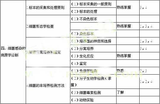 | (4)微生物學檢測 | 熟練掌握 | 3,4 | ||