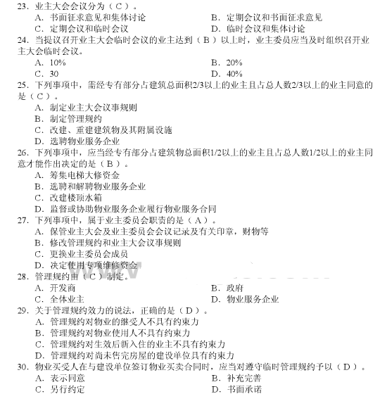 - 物業管理師《綜合能力》章節習題第八章2016-02-29