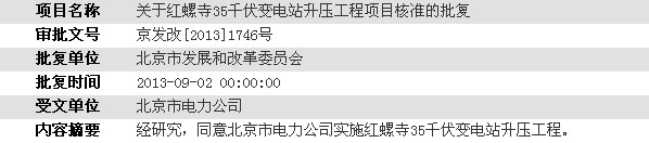摘要 北京市發改委關于紅螺寺35千伏變電站升壓工程項目核準的批復