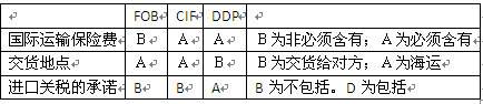 請從國際運輸保險的辦理、風險轉移界線和進口關稅的承諾三個方面,對FOB、CIF和DDP三個貿易術語進行分析。【第四章P60-61】