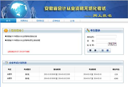 2014年安徽會計從業(yè)資格考試報名網上流程