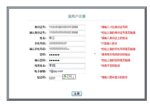 1.1.4 新用戶注冊在新用戶注冊界面,輸入身份證號、姓名、密碼等信息。