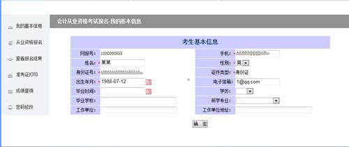 確認您的個人姓名,身份證號碼無誤后,單擊“確定”按鈕,注冊成功。注冊成功后系統(tǒng)自動進入我的基本信息頁面。