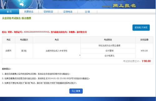 (6)經過網銀繳費操作之后,回到報名頁面, 請根據您的繳費情況選擇操作: