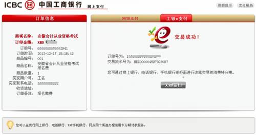(4)點擊“馬上繳費”按鈕,進入準備繳費狀態(tài),此時不可以再對報考信息進行修改,單擊“確認繳費”按鈕,跳轉到工商銀行的網銀支付頁面進行繳費操作(如下圖):