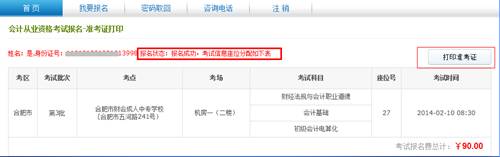 選擇完考試時間以后,系統(tǒng)自動進入如下頁面,單擊“打印準考準”即可打印準考證。