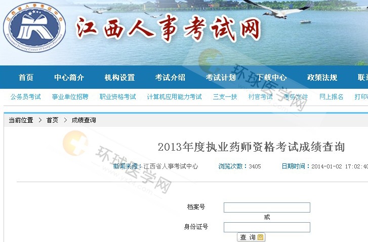 2013年度江西執業藥師資格考試成績查詢開始,環球網校醫學考試網第一時間發布執業藥師考試成績查詢信息。
