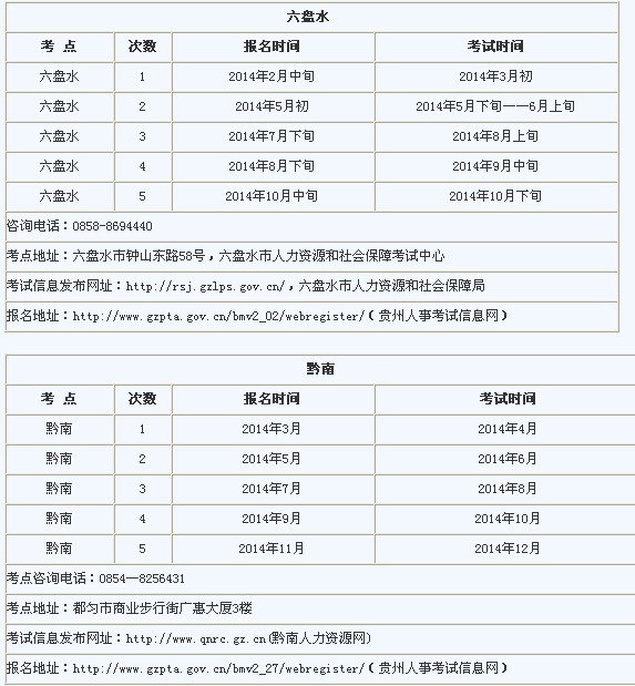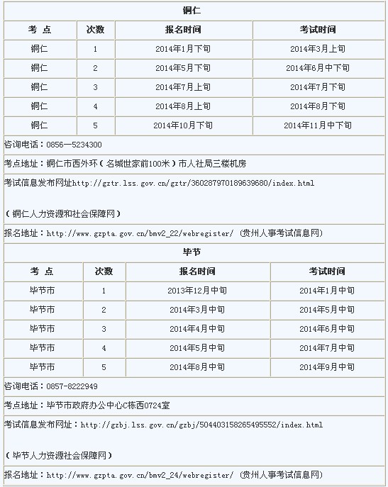 此計劃是結合省直及九個市(州)人事考試實際情況制定,一般不得變動,如遇國家法定節假日、公務員考試、事業單位考試、全國專業資格考試等大型考試需變更考試時間時,我們將及時在“貴州人事考試信息網”通報變更情況,考生可以到網站查詢。具體報名考試時間請以各市、州考試中心發布的通知為準。