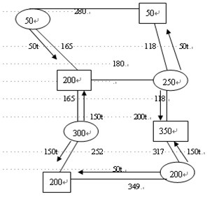 最低運費=(165×50+118×50+118×200+165×150+317×150+252×150+349×50) ×3=495900(元)