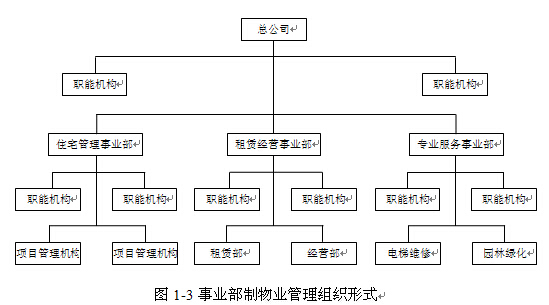 (1)主要優點:加強了專業管理的職能,適應涉及面廣、技術復雜、服務多樣化、管理綜合性強的物業管理企業。