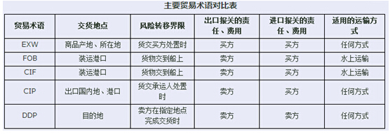 常用的主要貿易術語對比表如下。