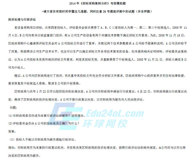 2014招標師《招標采購案例分析》考前模擬題