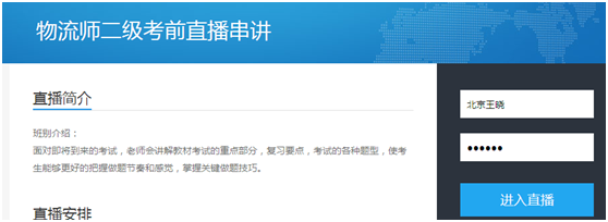 為了感謝各位新老學員對環球網校的關注,也為了讓各位學員能更好地復習備考物流師,環球網校特意為大家開設了考前直播串講課。本串講課適合參加2014年下半物流師考試的學員,套餐中含考前直播串講班的學員可以觀看此次直播。為了讓大家能及時準確的進入直播課堂,特告知大家以下事項: