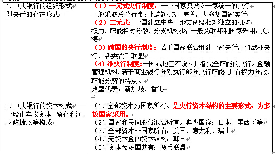 考點(diǎn)三:中央銀行的組織形式與資本構(gòu)成