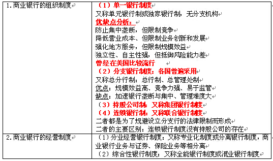 考點(diǎn)四:商業(yè)銀行的組織制度與業(yè)務(wù)經(jīng)營(yíng)制度
