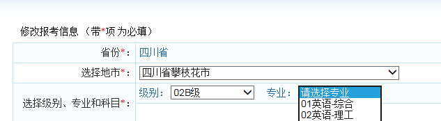從中國人事考試網上上傳照片后,你就可以找到四川有個報名入口,點擊報名,會有讓你選擇職稱英語科目的界面,界面如下: