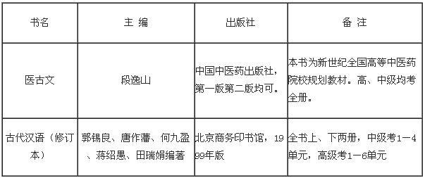 我省自行組織命題的醫(yī)古文、古漢語考試教材版本為:
