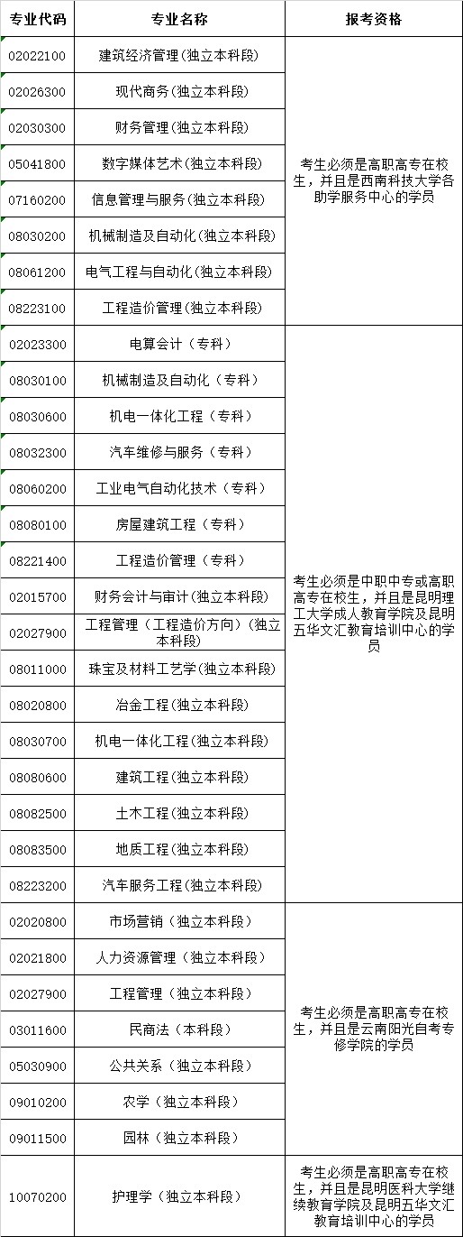 3、報考下列專業的考生,必須具備下列資格,否則不能取得畢業證書。