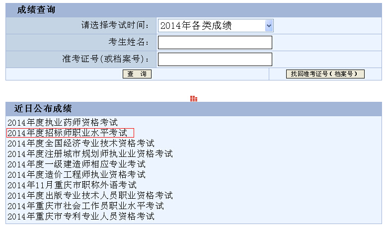 重慶2014年招標師考試成績查詢入口12月29日開通