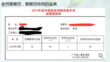 - 高分通過執業藥師考試!謝謝老師的考試寶典!2014-12-30