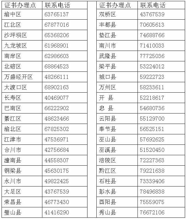 附:2014年11月重慶市職稱(chēng)外語(yǔ)考試成績(jī)合格通知單辦理點(diǎn)聯(lián)系電話表