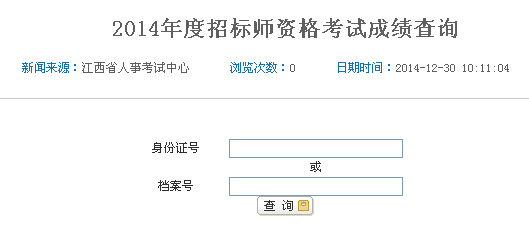 江西2014年招標師考試成績查詢入口12月30日開通,請注意避開成績查詢高峰期。