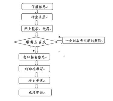 在報名期間登錄系統(tǒng)后,通過《考生報名》模塊進行報名,流程為:閱讀考生須知→選擇考試科目、考點、日期→網(wǎng)上繳費,必須在一小時內(nèi)完成繳費,否則考生選擇的考點和考試日期信息將與考生解除綁定,考生需重新選擇考點和考試日期進行報名繳費。