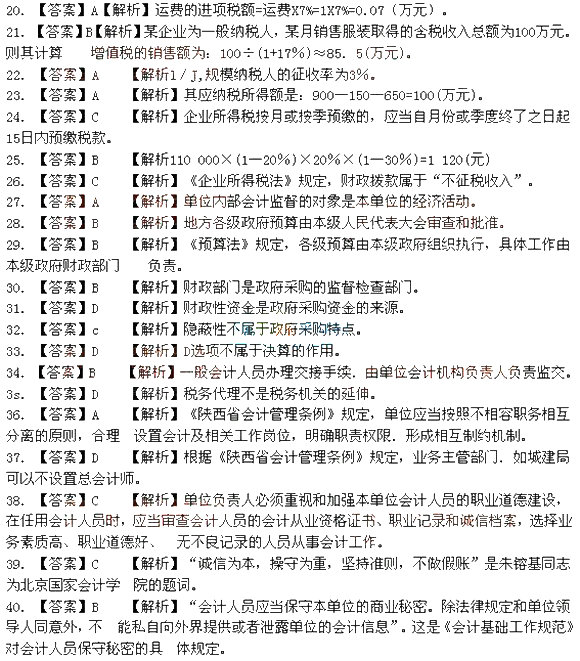 20.【答案】ABCD 【解析】根據《陜西省會計管理條例》規定,會計人員實行回避制度。與單位負責人有 配偶、姻親、直系血親、三代以內旁系血親關系的,不得擔任本單位會計師、會計機構負責人、會計主管人員等。
