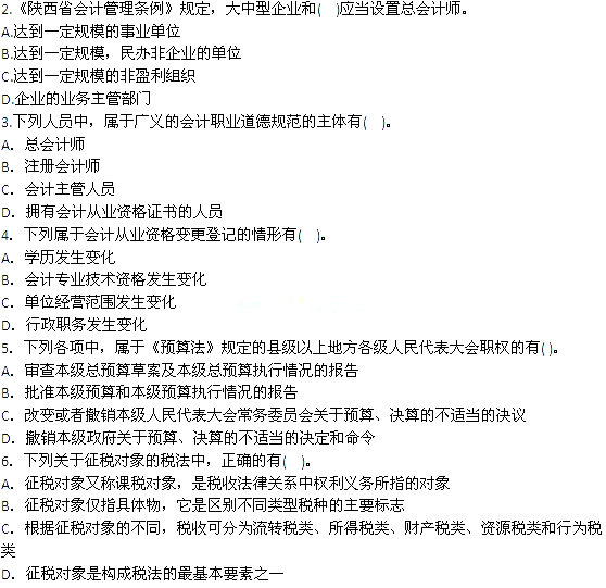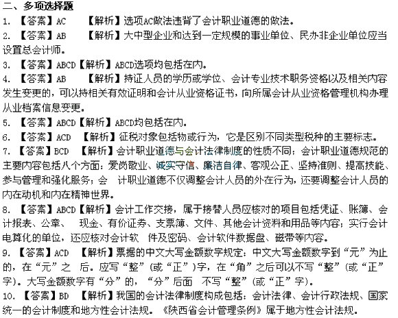- 浙江會計從業資格考試試題及答案(財經法規多選)2016-07-12