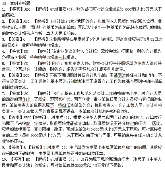 10.【答案】× 【解析】堅持準則,就是要求會計人員在處理業務過程中,嚴格按照會計法律制度辦事,不為主觀或他人意志左右。這里所指的“準則”不僅指會計準則,而且包括會計法律、會計行政法 規、國家統一的會計制度以及會計工作相關的法規制度。