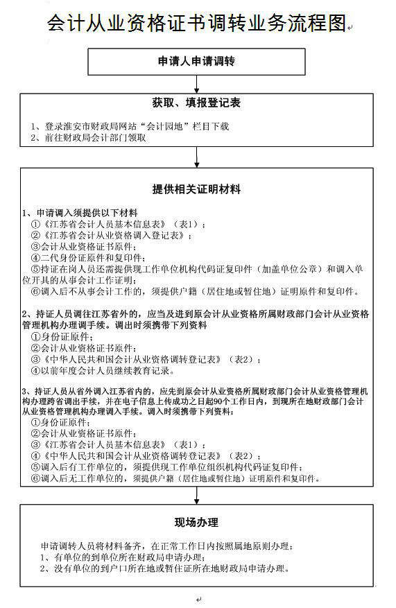 2014年淮安會計從業資格證調轉流程圖