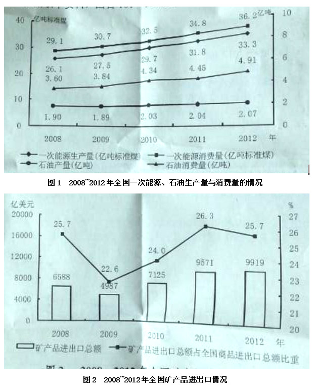 110、關(guān)于2009-2012年全國礦產(chǎn)品貿(mào)易和能源生產(chǎn)、消費,能夠從上述資料中推出的是: