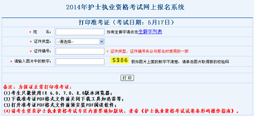 2014護士準考證打印4月25日開始 現已開通