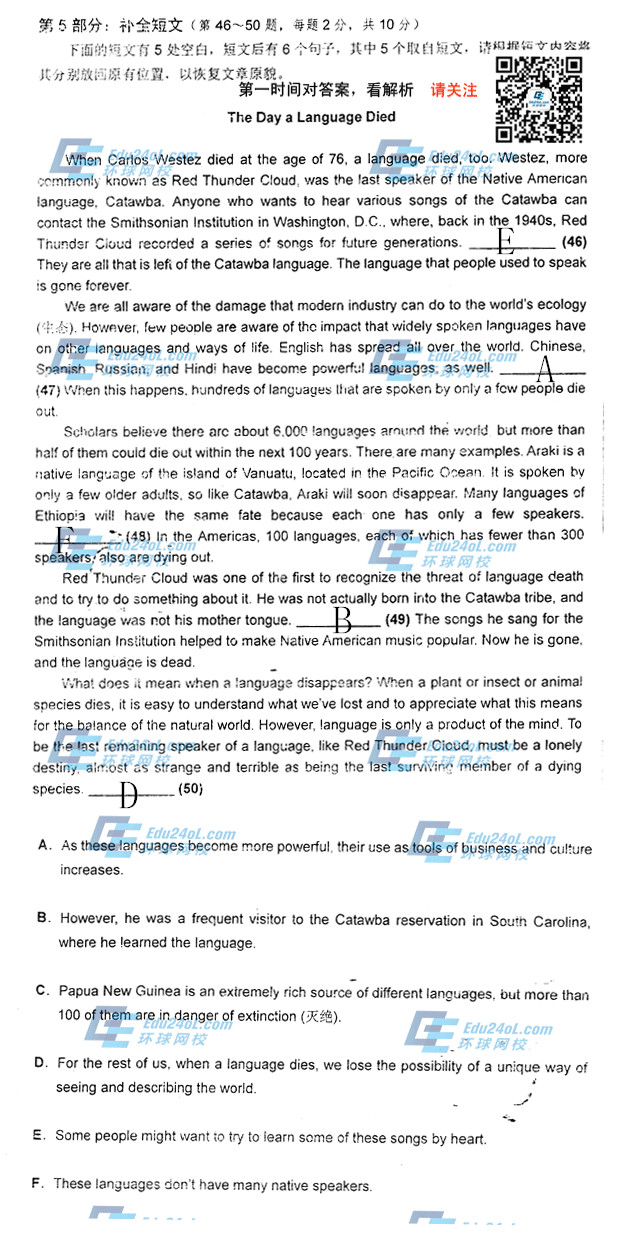 - 職稱英語真題及答案衛(wèi)生C補全短文2017-06-29