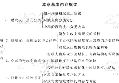 本章主要講述財政支出分類、財政支出規模和增長理論、我國財政支出結構、財政支出績效考評等基本內容。