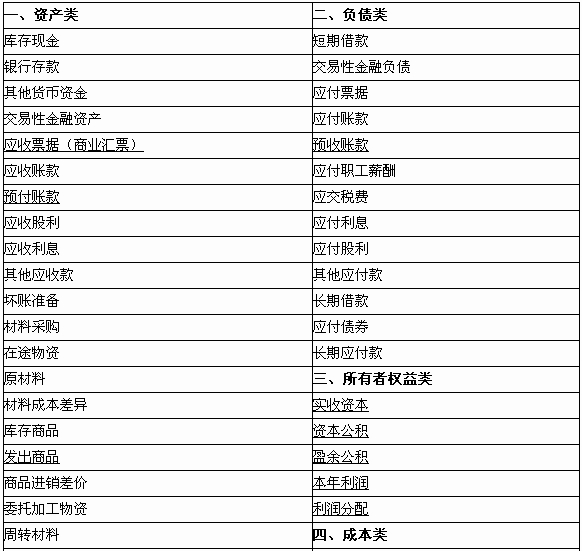 會計科目按其所歸屬的會計要素不同,一般分為資產類、負債類、所有者權益類、成本類、損益類等五大類,每一大類會計科目可按一定標準再分為各個具體科目。