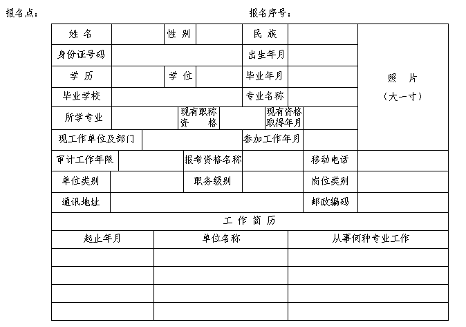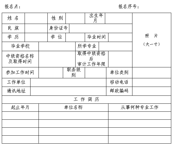 2014年度審計(jì)專(zhuān)業(yè)技術(shù)資格考試報(bào)名審核發(fā)證登記表