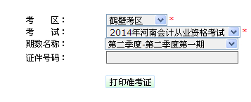 河南鶴壁2014年第二季會計從業資格考試準考證打印入口
