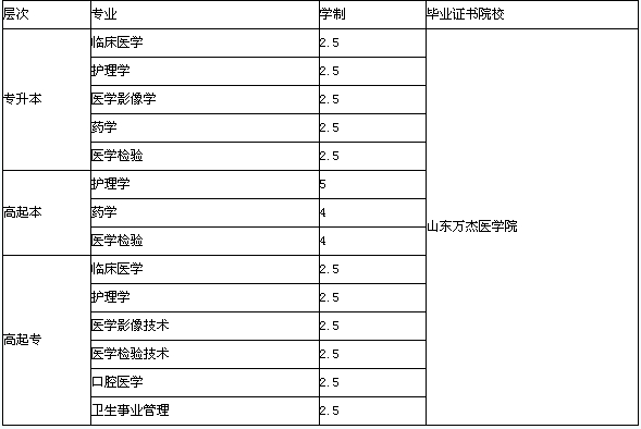 山東萬杰醫學院醫科類成人招生專業一覽表