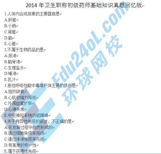 摘要 2014年衛(wèi)生職稱初級藥師基礎(chǔ)知識習(xí)題回憶版,環(huán)球網(wǎng)校醫(yī)學(xué)網(wǎng)搜集整理供考生們參考,希望對大家有幫助。