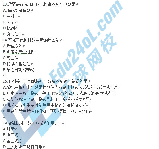 - 2016年藥學(xué)初級師資格考試習(xí)題之《基礎(chǔ)知識》文字版部分考題2016-05-24