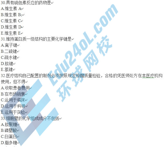 - 2016年藥學(xué)初級師資格考試習(xí)題之《相關(guān)專業(yè)知識》文字版部分考題2016-05-24
