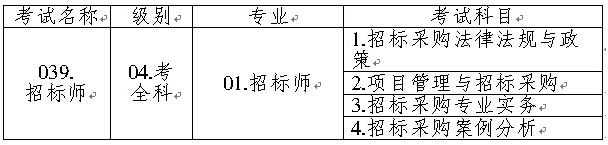 四、招標師職業水平考試名稱、級別、專業和科目代碼為:
