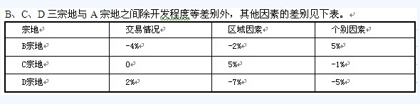 相對A宗地而言,其50年土地使用權價格因于發程度不同而有差異:達到“七通一平,,時地價比“五通一平”高100元/┫,達到“五通一平’’時地價比“三通一平”高60元/┫。根據以上資料,回答51~55小題的問題。