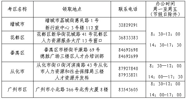 注:在廣東省人事考試局報名的考生,請與廣東省人事考試局聯系領取(地址:廣州市天河路13號潤粵大廈四樓)。