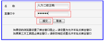 2、在彈出的對話框中(如下圖),在名稱框中填入個人信息:科目級別+個人姓名,如:人力二級王曉;正確填寫直播口令787167,點提交,進入課堂。