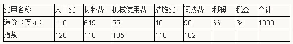 30.某典型工程,其建筑工程造價的構(gòu)成及相關(guān)費用與上年度同期相比的價格指數(shù)如下表所示。和去年同期相比,該典型工程的建筑工程造價指數(shù)為( )。