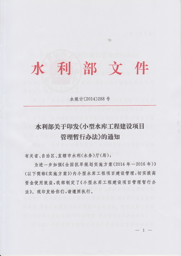 摘要 水利部關于印發《小型水庫工程建設項目管理暫行辦法》的通知