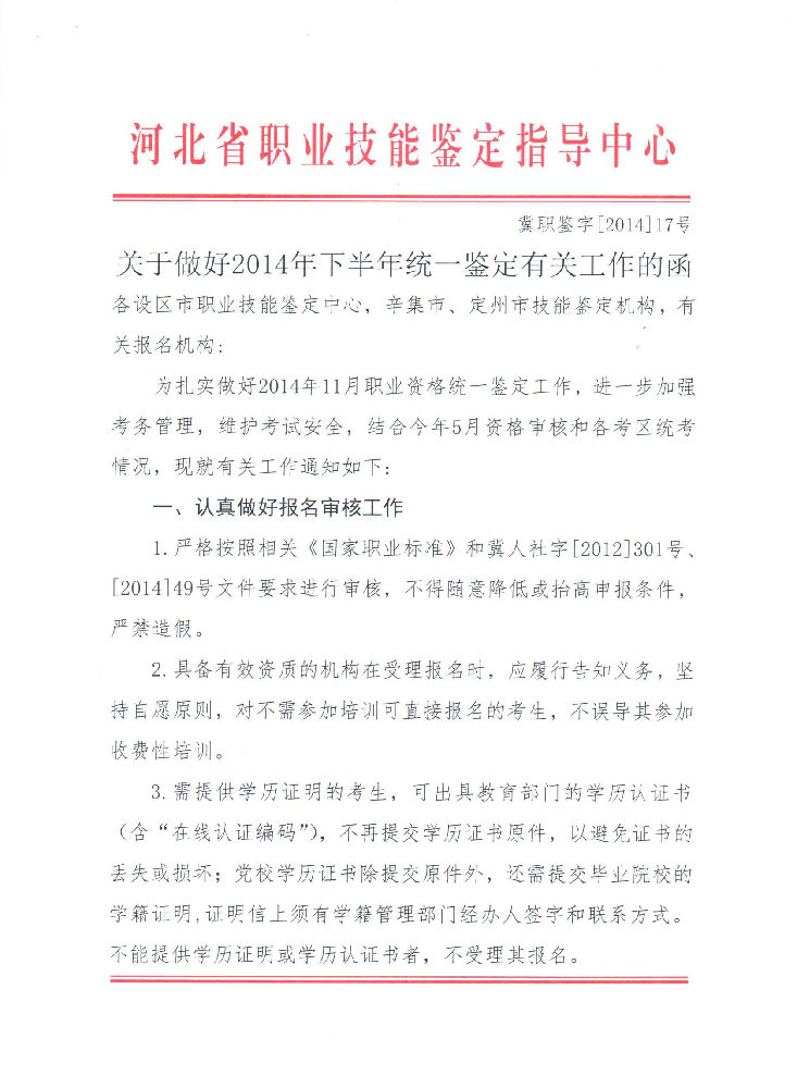 河北省2014年11月秘書資格考試報名審核和考點管理工作通知