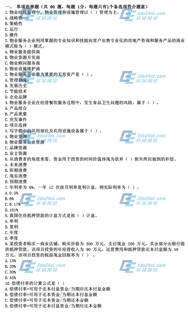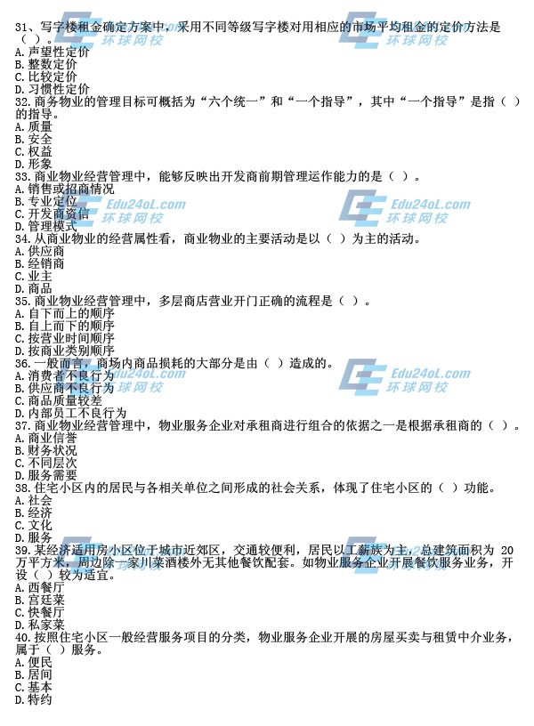 - 2014年物業管理師考試《經營管理》真題點評(完整版)2014-09-12
